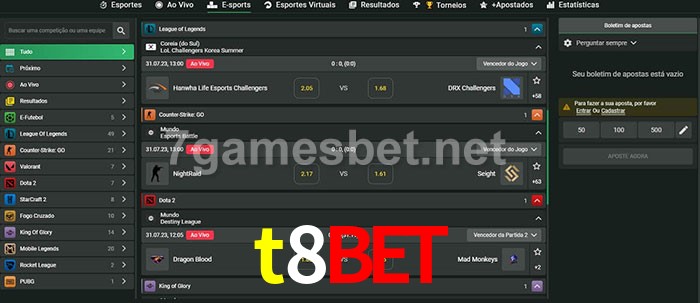 O t8bet oferece uma grande seleção de opções de apostas em e-sports com probabilidades competitivas